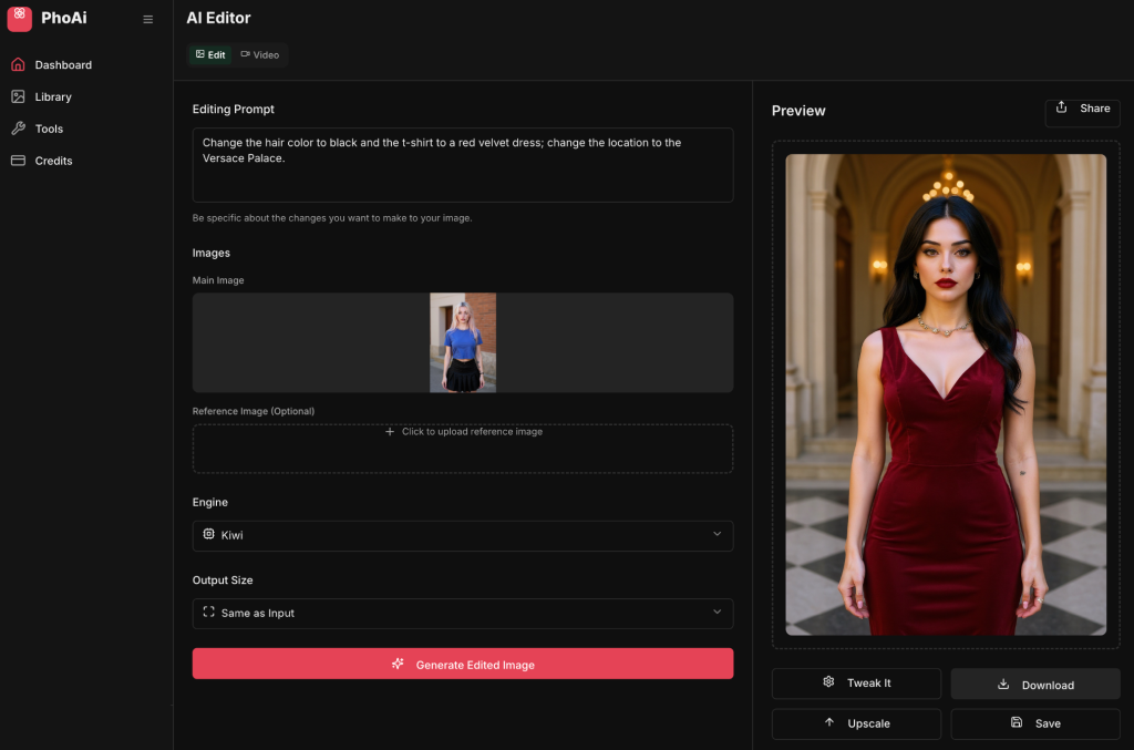 Phoai is an AI photo editor that simplifies photo editing with simple text. Upload an image, type a description like “new hairstyle,” “change background,” or “turn this into a video,” and the AI will do the rest.